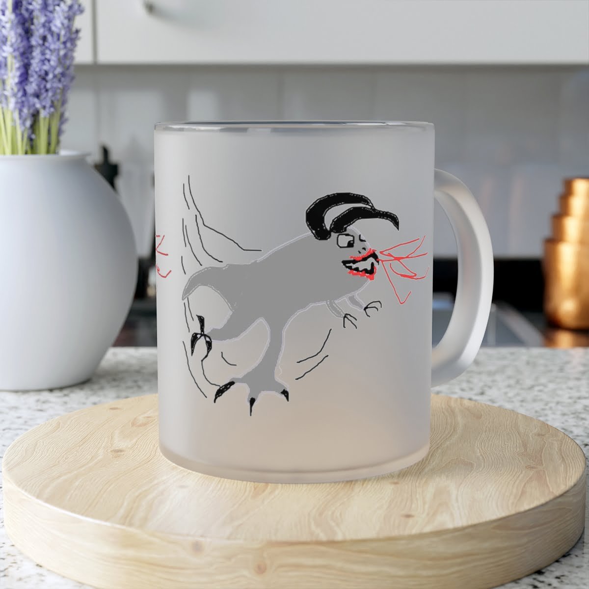Matinio stiklo puodelis, kuriame telpa 330 ml pasirinkto gėrimo. Tinkamas plauti indaplovėje.