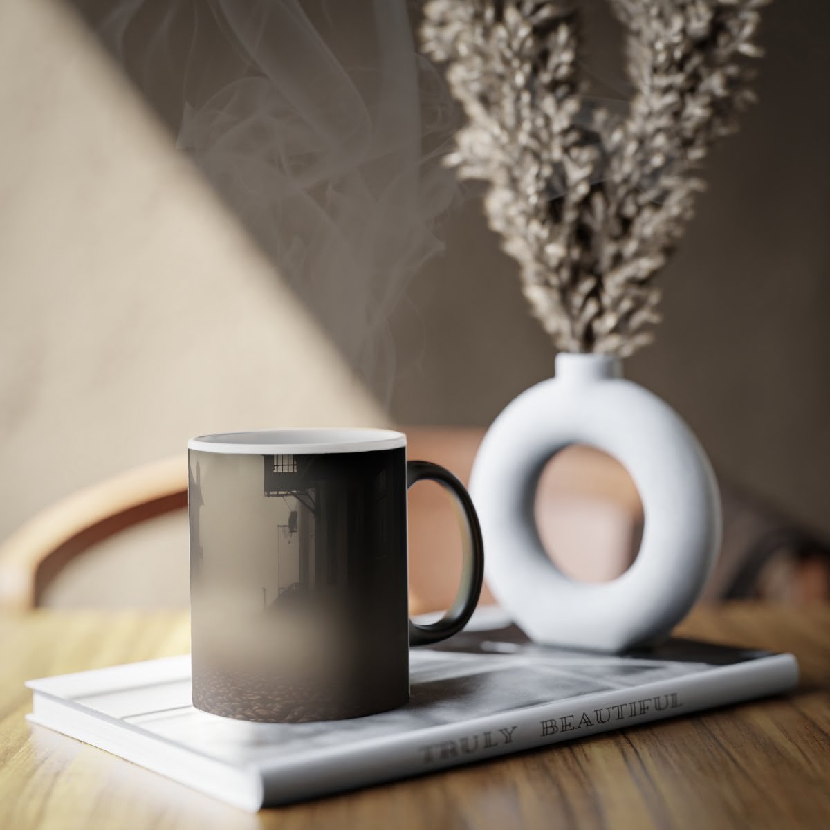 Sugrąžinkite vaikystės magiją su spalvą keičiančiu puodeliu. Šie 330 ml talpos puodeliai pagaminti iš keraminės medžiagos, kurios išorė yra juoda, o vidus – baltas. Dėl į šilumą reaguojančio paviršiaus ir matinės apdailos, puodelio grafinis piešinys atsiskleidžia į jį ipylus karšto gėrimo.